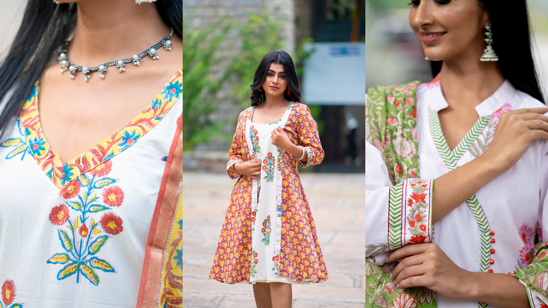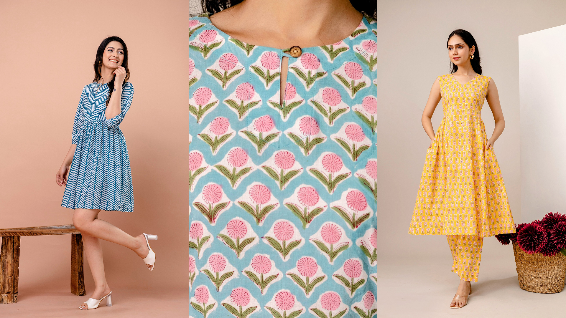 180-240 GSM cotton and silk blends. Traditional hand block printing. Quality construction.