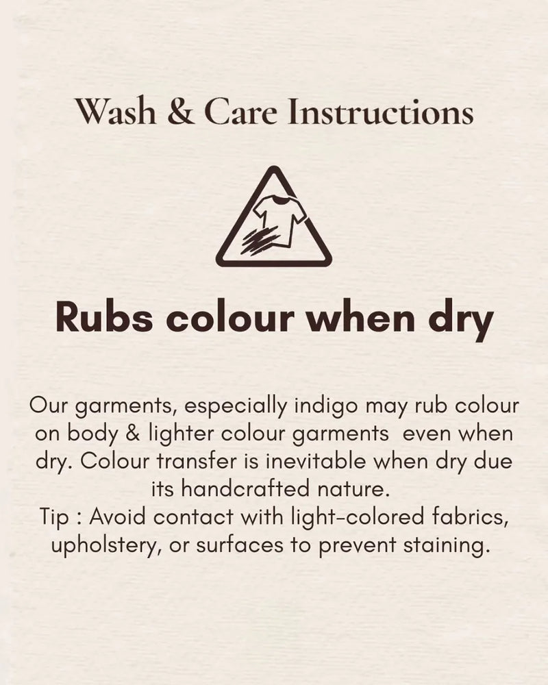 Your garment is crafted using centuries-old hand block printing techniques and natural plant-based dyes (indigo, madder, turmeric). This means each piece is: